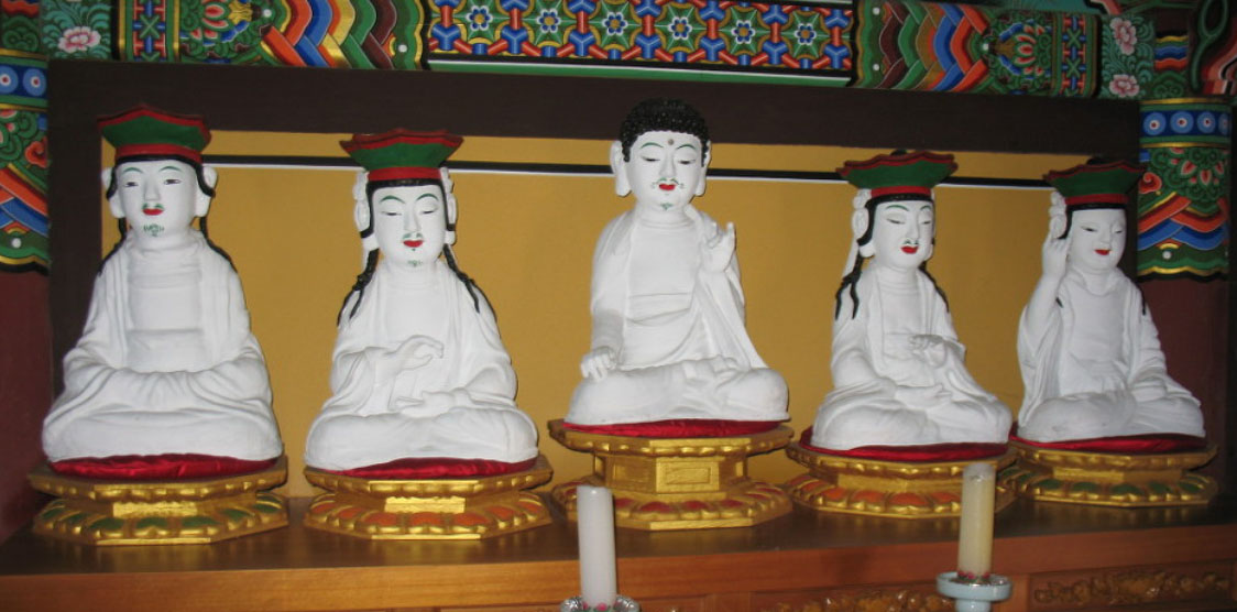응진전에는 석가여래 좌상과 좌우보처로 문수. 보현. 관세음. 대세지 보살의 4대 보살과