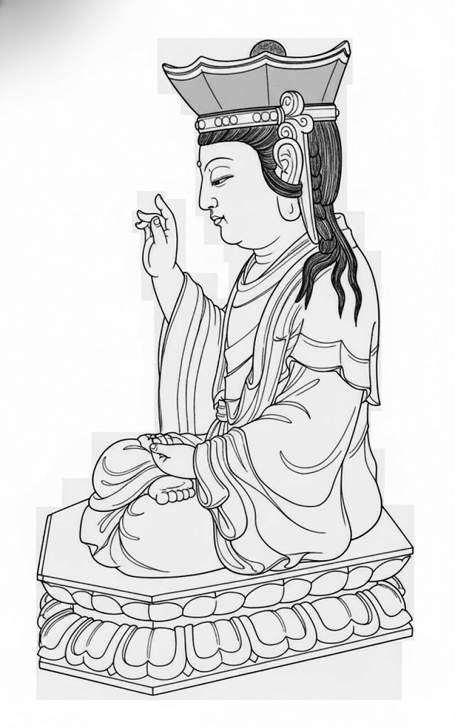 - 상징: 명상하거나 단순한 법복 차림. 경전, 합장.